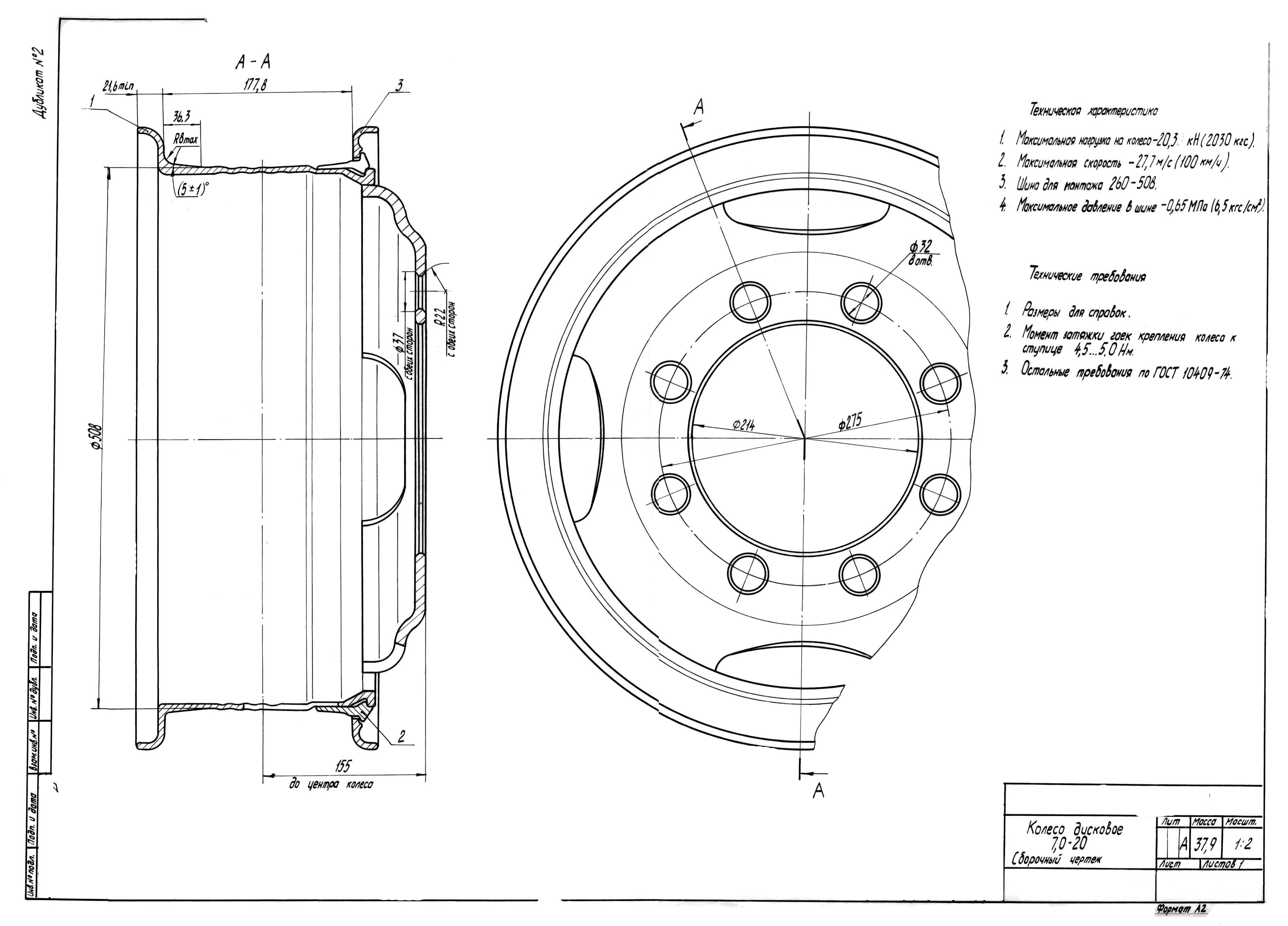 | Допустимые размеры шин: | 9,00-20 9,00R20 260R508 |